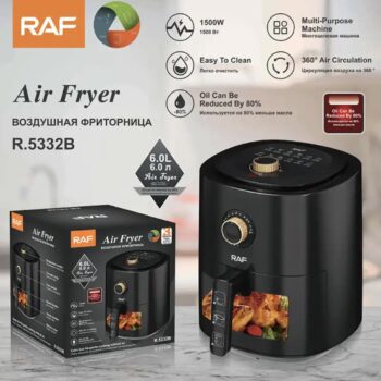 Mundëson qarkullim të ajrit 360°: Friteza përdor teknologjinë e qarkullimit të ajrit 360°, që siguron një shpërndarje të barabartë të ajrit të nxehtë rreth ushqimeve, duke mundësuar pjekje të njëtrajtshme dhe të shpejtë.