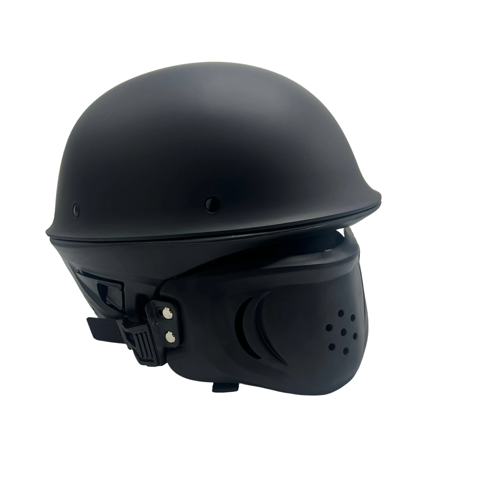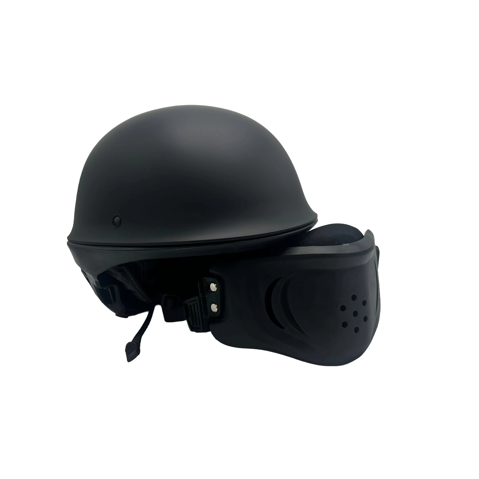 Mburoja e fytyrës e heqshme për përdorim të shumëllojshëm:Përfshin sistem rripi të rregullueshëm dhe kapëse të forta anësore që e mbajnë kokoren të fiksuar edhe në situata me dridhje ose shpejtësi të lartë.