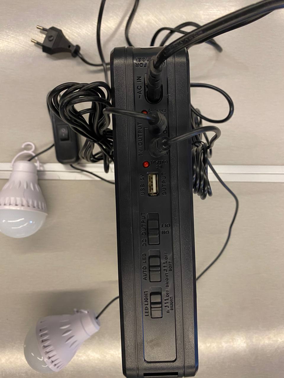 Dalje DC 5V:Pajisja shërben gjithashtu si burim energjie për karikimin e pajisjeve elektronike,falë daljes DC 5V.Për më tepër, prozhektori mundëson furnizimin me energji të dy llambave LED të jashtme, të cilat mund të përdoren në ambiente të ndryshme sipas nevojës.Secila llambë është e pajisur me çelës individual për ndezje dhe fikje,me fuqi 3W dhe tension pune DC nga 3.2V deri në 8V.