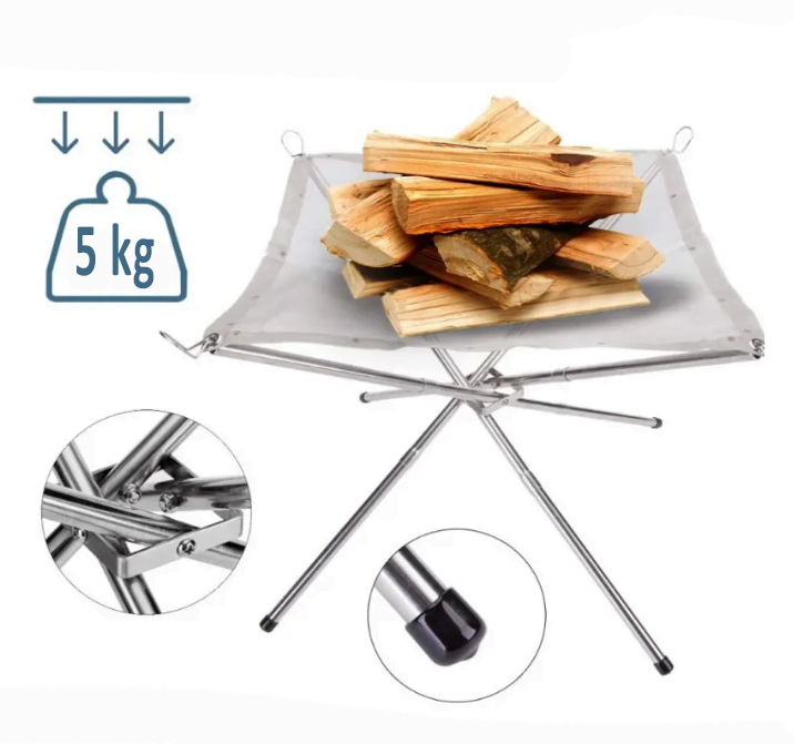 Materiali prej çelik inoks:Tavolina rezistente ndaj zjarrit është një zgjidhje praktike dhe e sigurt për përdorim në ambiente ku nevojitet stabilitet dhe mbrojtje nga nxehtësia, si gjatë gatimit në natyrë, kampingut, barbeque-ve apo përdorimit të pajisjeve që prodhojnë flakë ose temperaturë të lartë. Falë ndërtimit prej çeliku inoks, ajo ofron rezistencë të lartë ndaj zjarrit, nxehtësisë dhe konsumimit, duke garantuar përdorim afatgjatë.