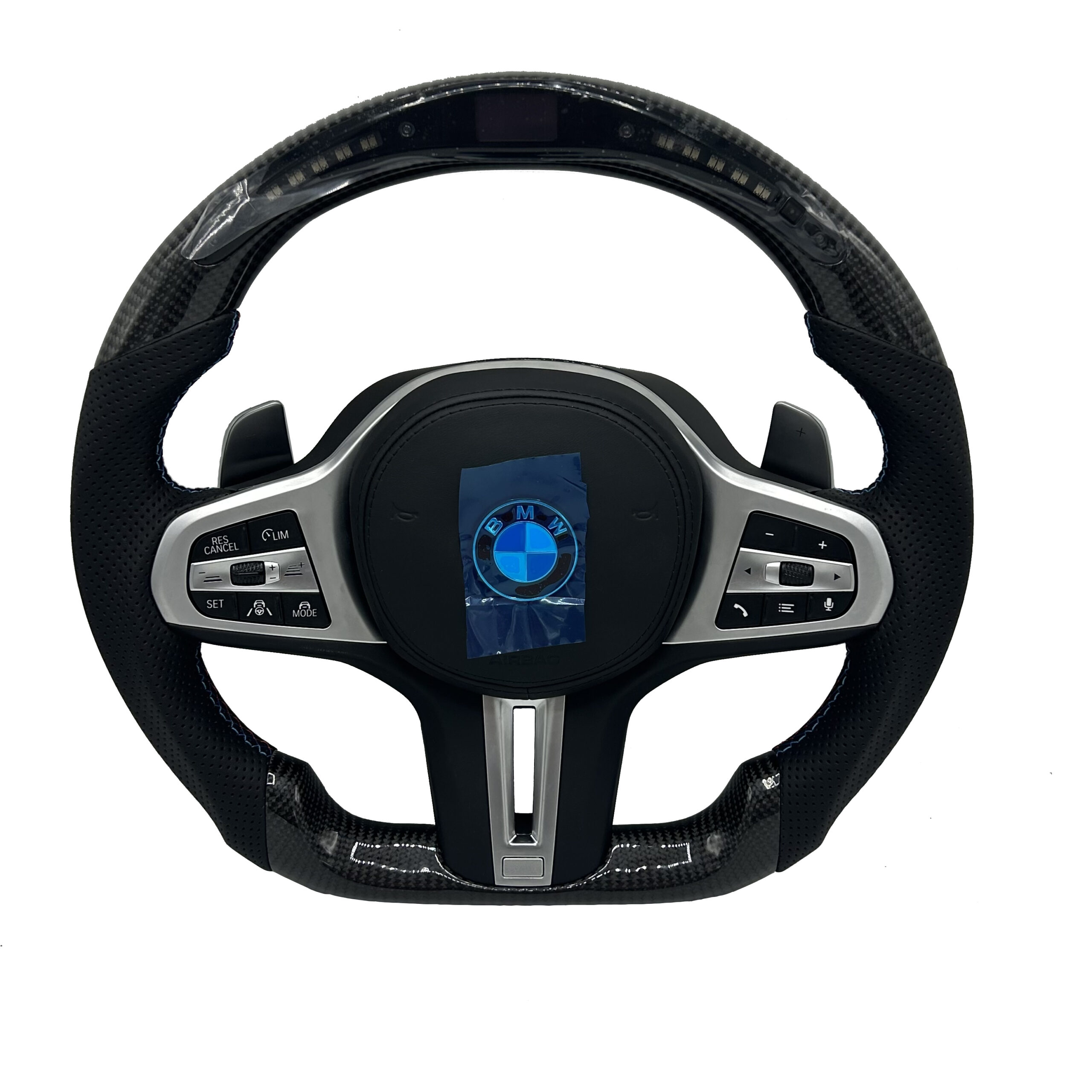 Timon sportiv për BMW M5 (G30) – Fibër karbon & lëkurë